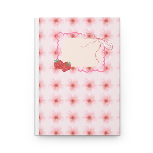 Pink Strawberry Floral Hardcover Journal — Cute Blank Notebook for Notes & Gifts